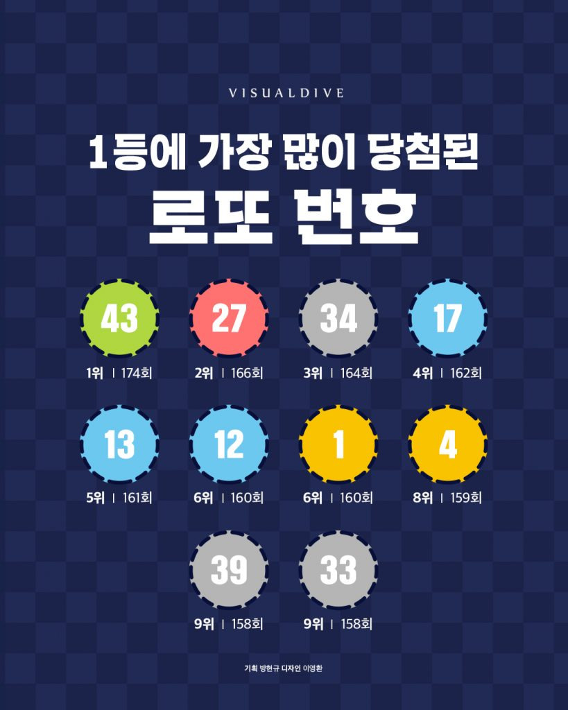 1등에 가장 많이 당첨된 로또 번호