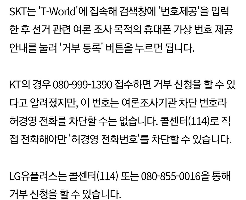 허경영 전화 통신사별 차단법