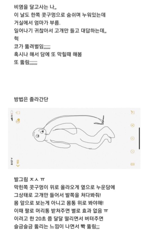 비염 환자를 위한 누워서 막힌 코 뚫는 법