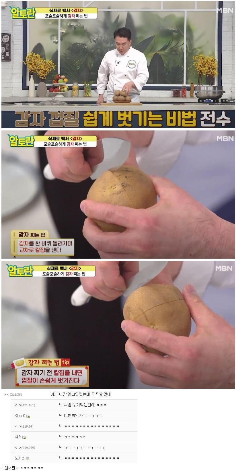 찐감자 껍질 쉽게 벗기는법 유출