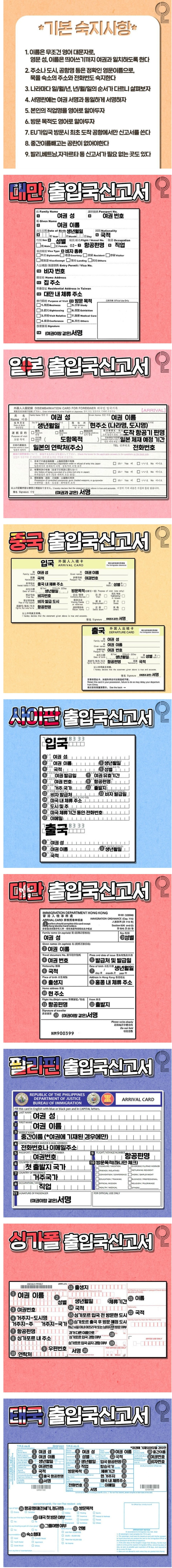 아시아지역 출입국신고서 쓰는 방법