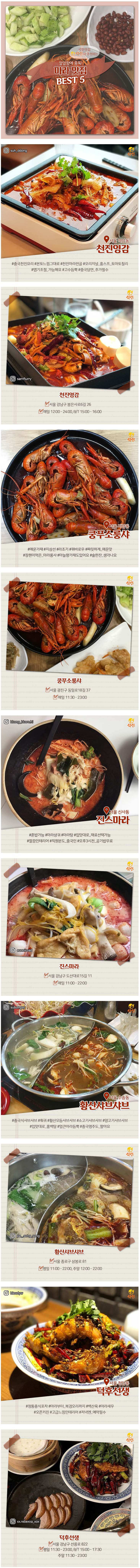 매콤함이 있는 마라 요리 맛집 BEST 5
