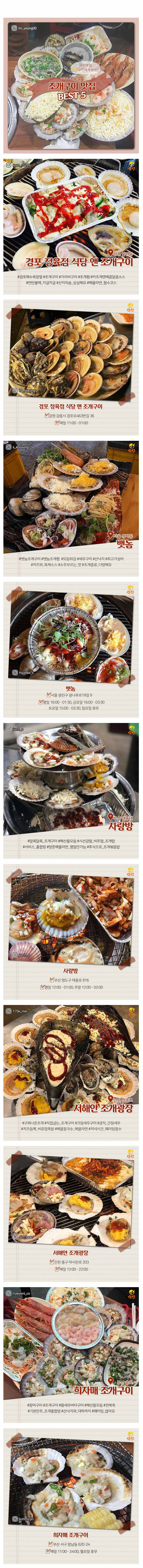 전국 조개구이 맛집 BEST 5