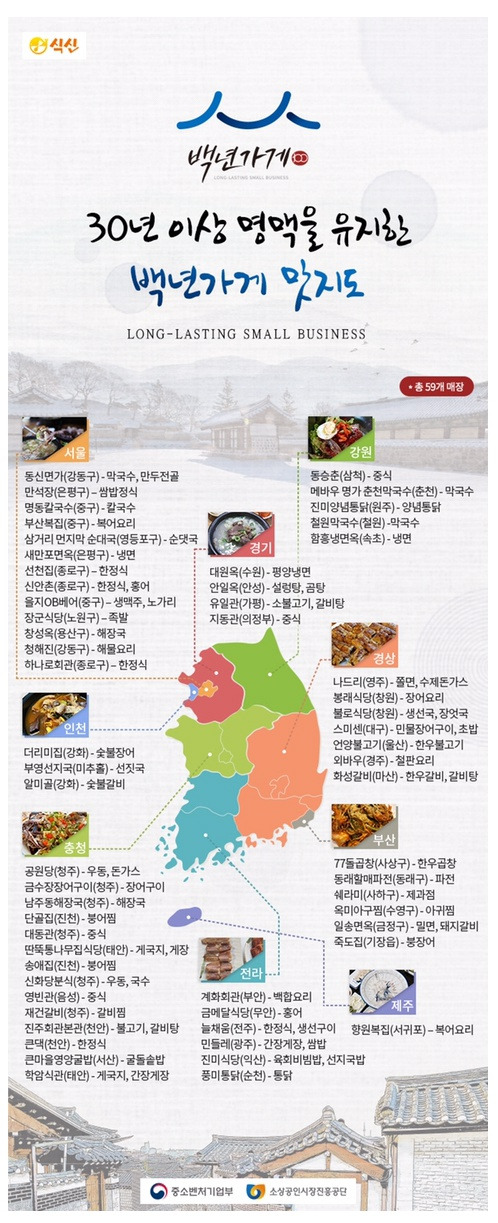 30년이상 명맥을 유지한 백년가게 맛지도
