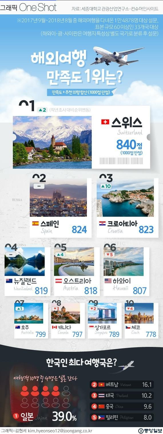 한국인들이 뽑은 해외여행 만족도 순위