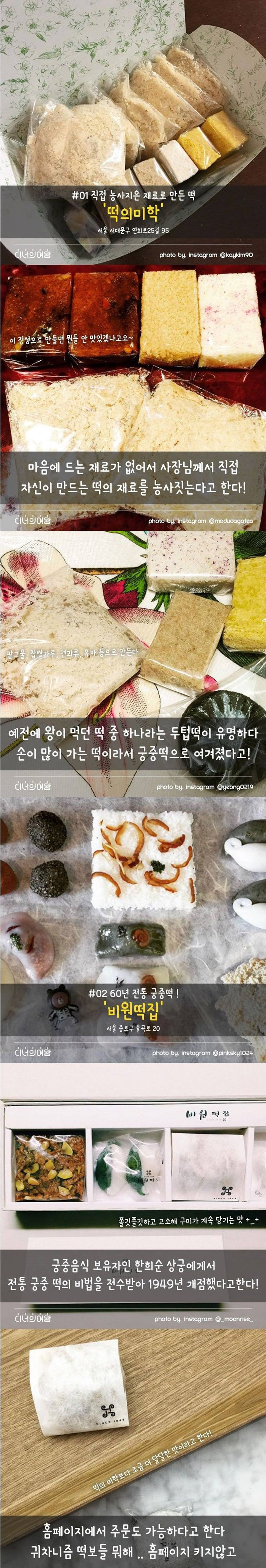 떡 마니아 사이에서 유명한 떡집 리스트