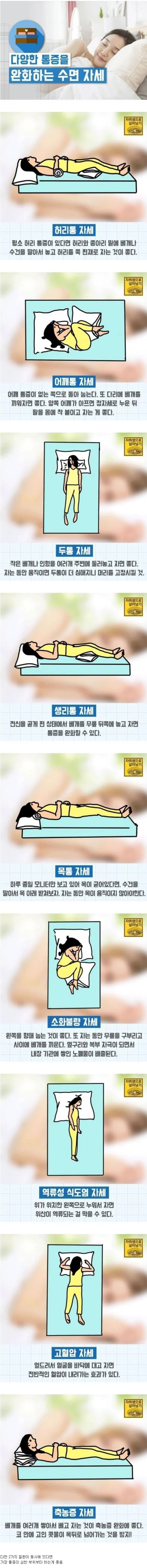 부위별 통증을 완화하는 수면자세