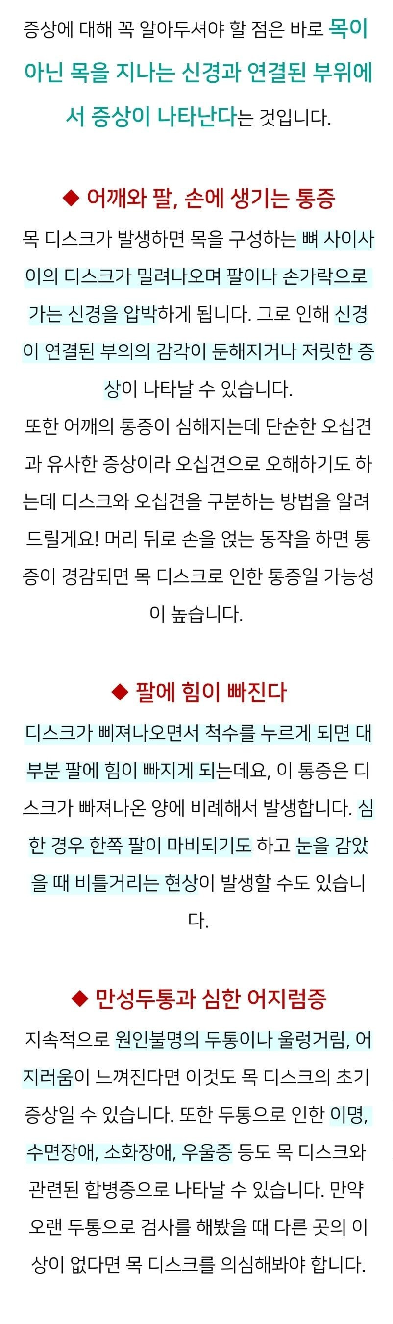 요즘 많이 나타난다는 목디스크 증상들