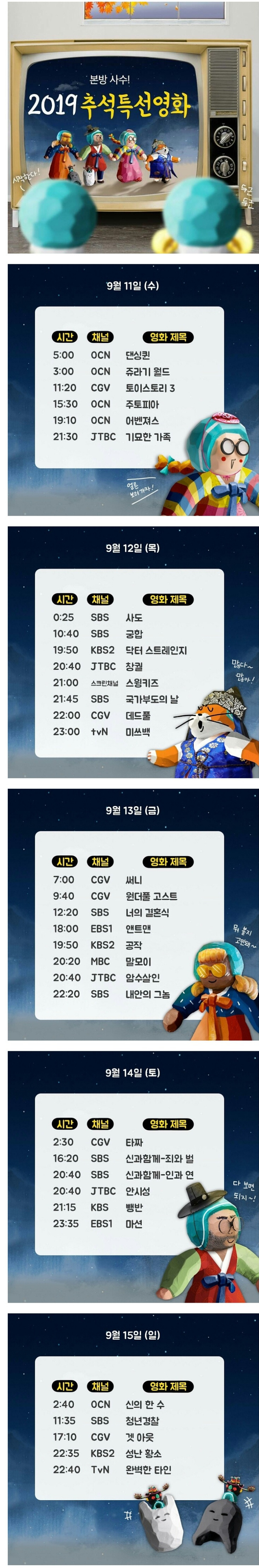 추석 특선영화 라인업