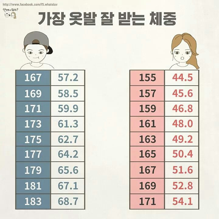 남녀별 옷발 잘받는 몸무게