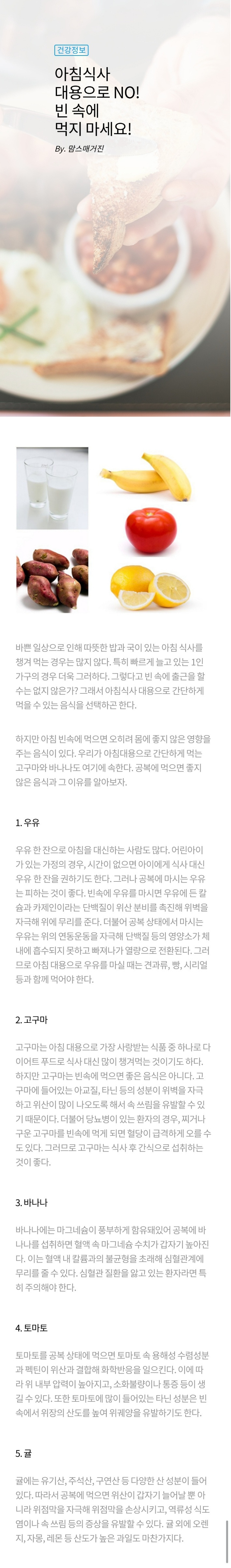 아침에 빈속에 먹지 말아야할 음식