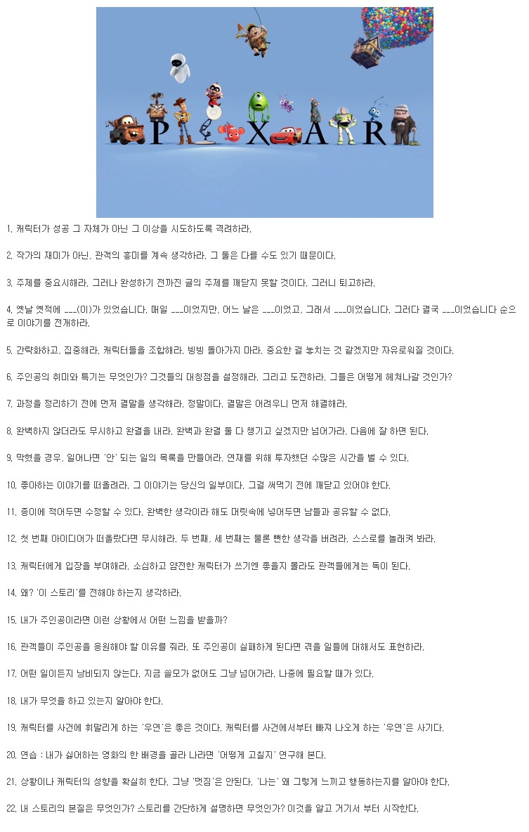 픽사가 스토리 텔링을 위해 사용한다는 팁