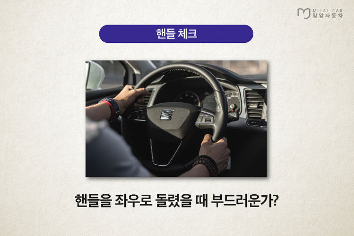 핸들을 좌우로 끝까지 돌리면서 조향장치의 상태를 확인할 수 있습니다.