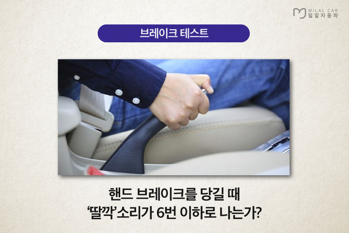 시승하신 차량의 핸드 브레이크를 위로 잡아 당길 때 6번 이상 넘어간다면 소모품인 브레이크 라이닝에