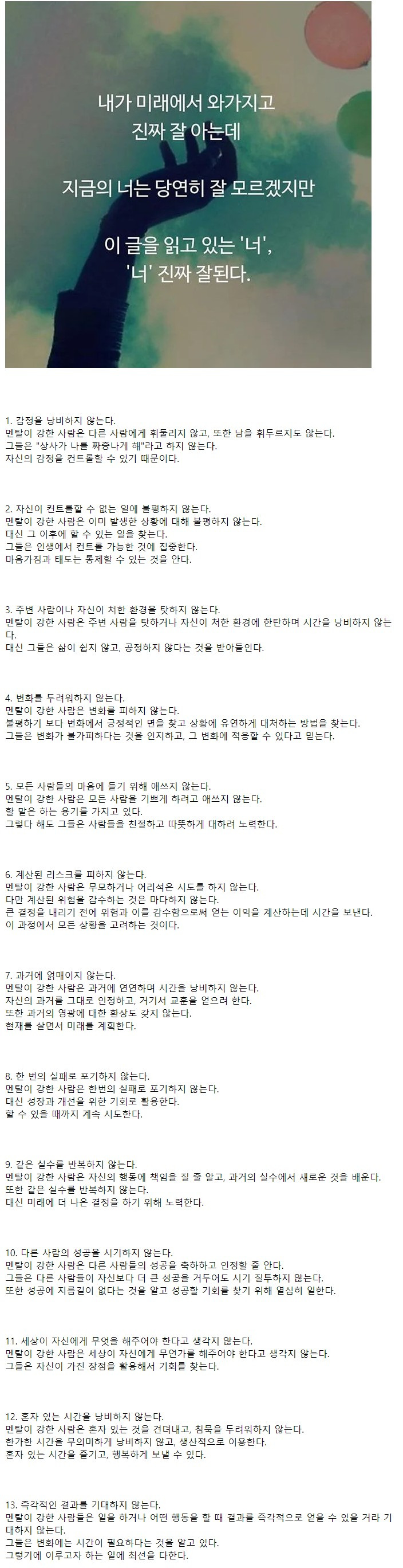 멘탈이 강한 사람들의 특징 13가지