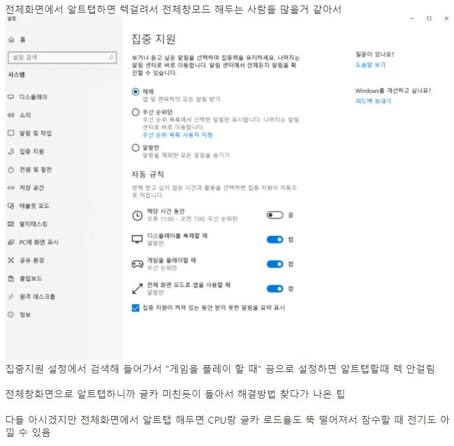 전체화면 모드에서 알트탭 렉 해결 방법