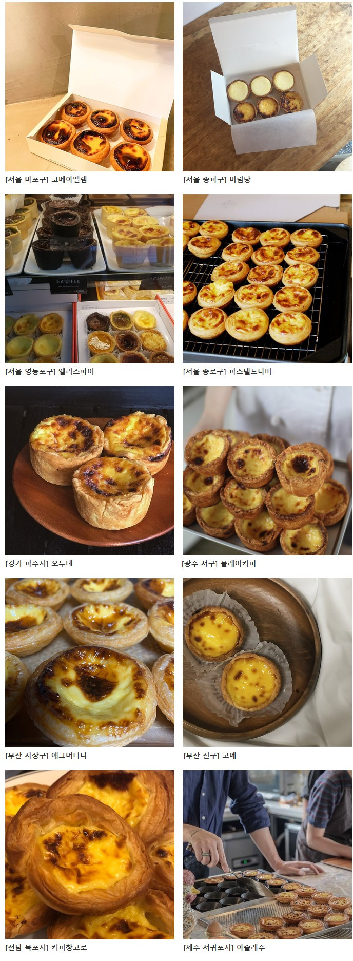 전국에 있는 에그타르트 맛집 목록