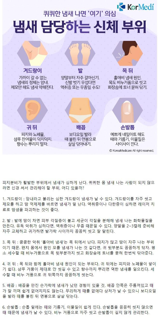 몸에서 퀴퀴한 악취가 나는 부위 Best 6
