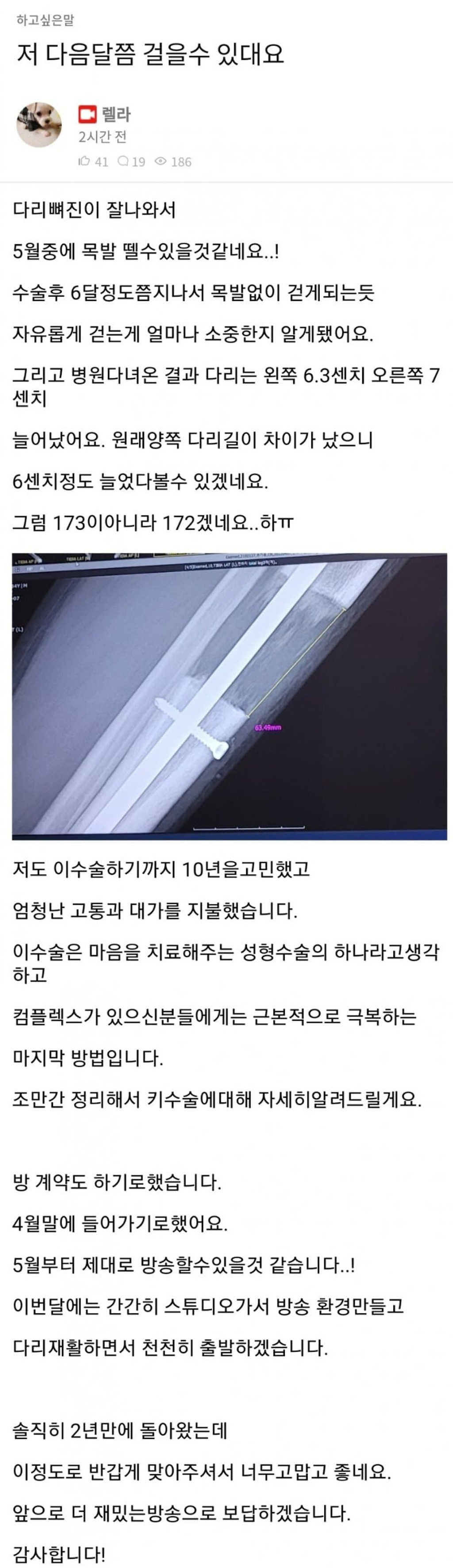 키 수술한 렐라 엑스레이 사진