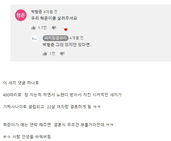 공혁준의 인생을 바꾼 사람들 본문 4 피클인방 목록 EVENT) 지금 로그인 후 광고 제거 혜택을 받으세요! TIP) 초승달 아이콘을 누르고 어두운 화면으로 전환 해보세요 TIP) 본문 하단 무지개 로켓을 누르고 시간 여행을 떠나보세요 TIP) 빈 공간을 두 번 누르면 맨 아래로 바로 갈 수 있어요 TIP) 편지 아이콘이 무지개 빛으로 빛난다면 쪽지가 온거에요 TIP) 본문 하단 댓글 온/오프 버튼으로 숨기거나 펼칠 수 있습니다 스케일링은 치위생사가 하는 이유 23.08.27 404804 지기TV 복귀에 또 피해 받는 채널.. 23.08.26 38356 악플러 선처 해줬더니 생긴 일 23.08.26 418704 10년 차 아이폰 유저로서 불편한 점 23.08.26 314817 170kg 뚱보남 렌탈하기 23.08.26 311905 음악 유튜브 뜻밖의 썸네일 어그로 23.08.26 329290 예산 맥주 축제 미리가본 유튜버 리뷰 23.08.25 20089 침착맨 옥냥이 술 먹방 전 후 비교 23.08.25 310428 열린1페이지 2페이지 3페이지 4페이지 5페이지 6페이지 7페이지 8페이지 다음 맨끝 게시물 검색 검색대상 제목 내용 제목+내용 댓글작성자 검색어 필수 삭제요청