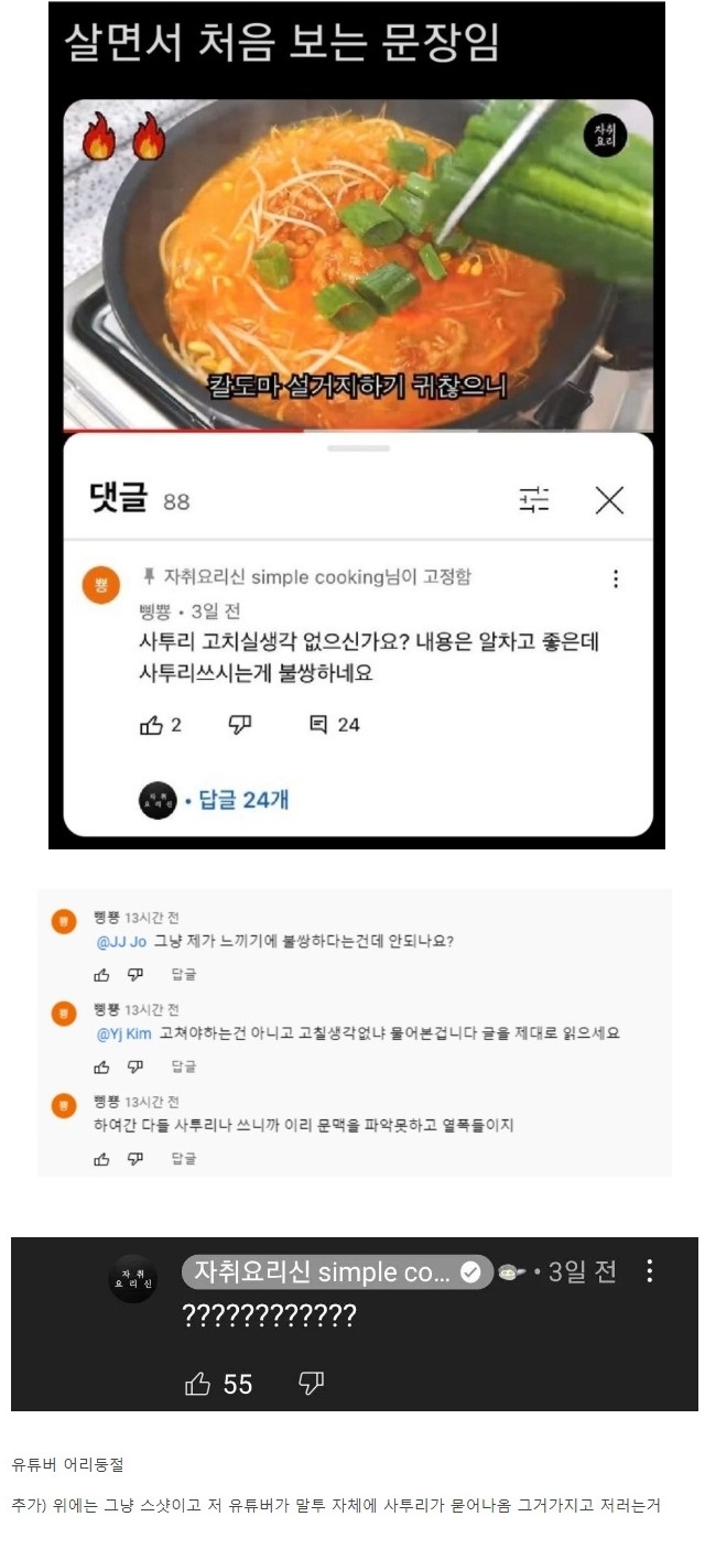 사투리 쓴다고 쿠사리 먹은 유튜버