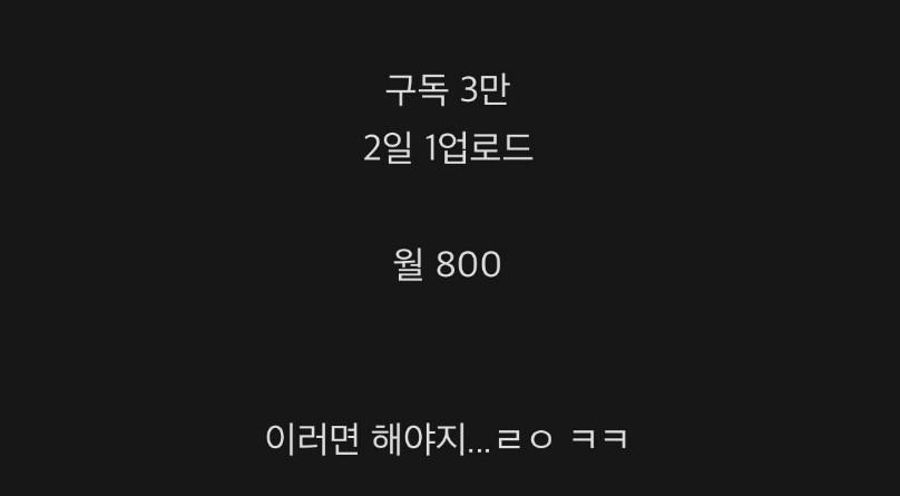 영상올리고 하... ㅅㅂ... 이러다가도 매달 통장에 800꽃히면 자괴감이고 뭐고 바로 자본치료각이네