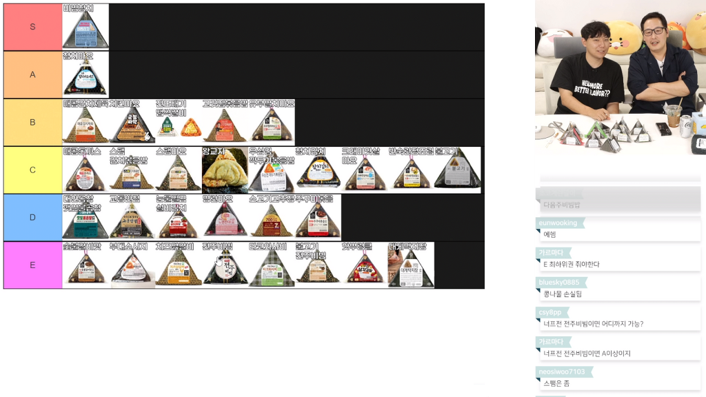 김풍, 승우아빠가 만든 삼각김밥 티어표