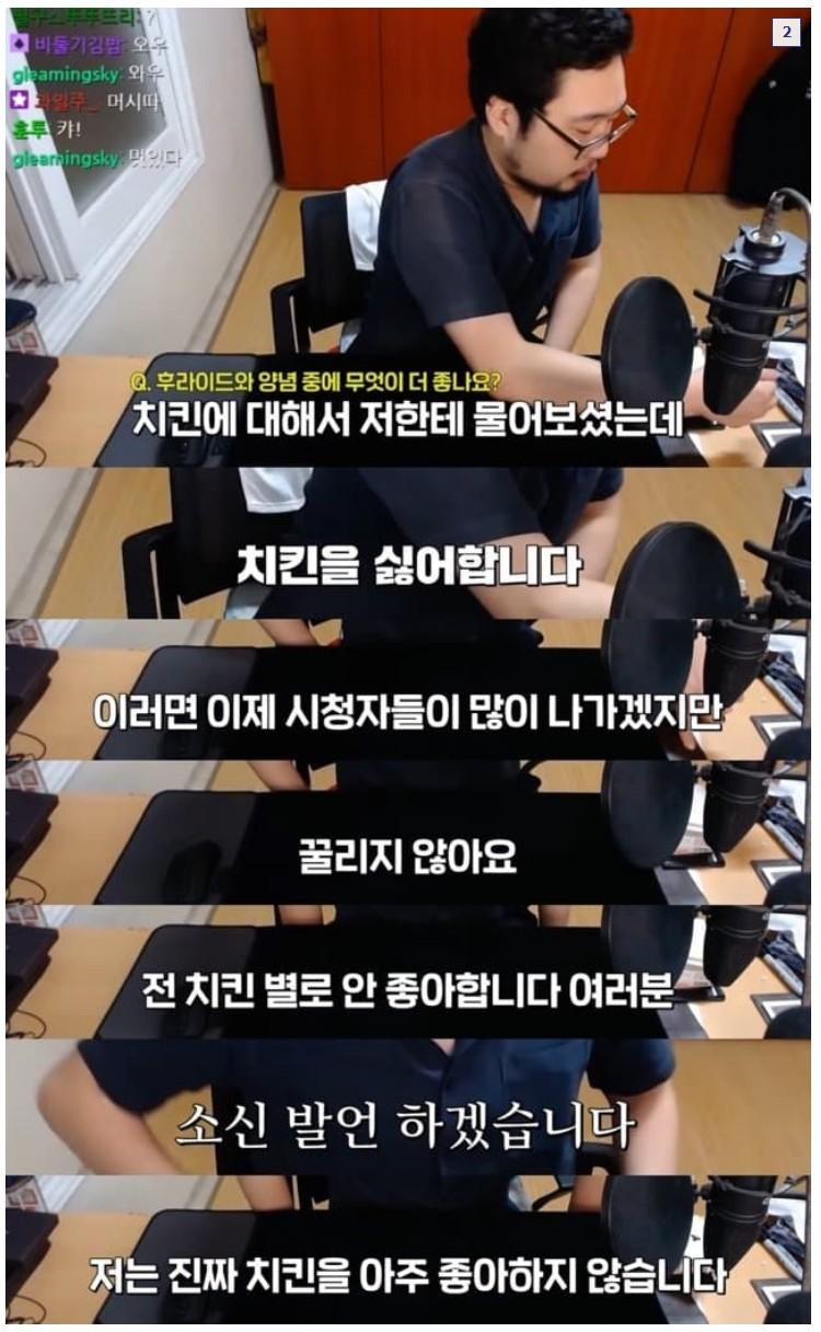 참고로 김준표는 예전부터 치킨 안좋아한다고 꾸준히 말했음