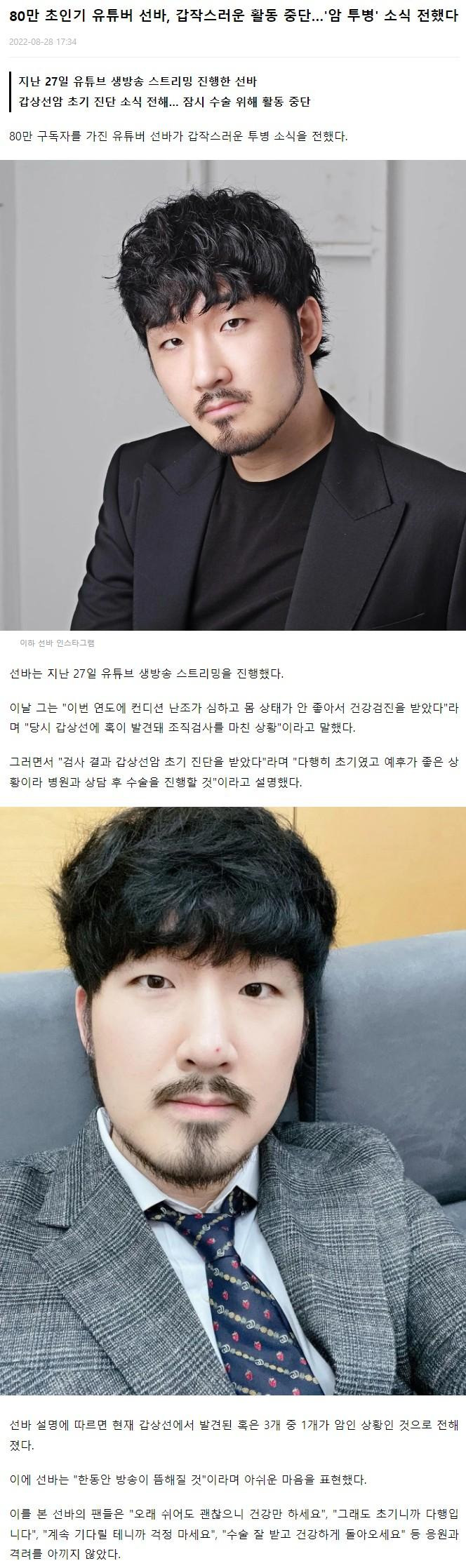 80만 유튜버 갑작스러운 '암 투병' 소식