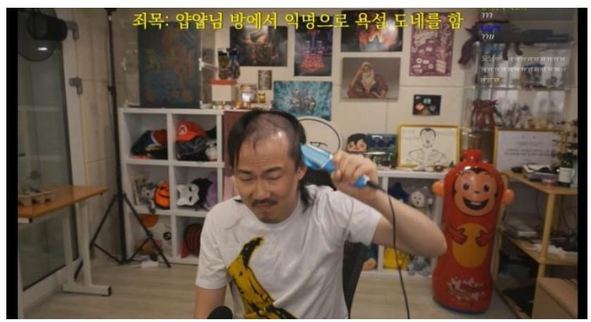 걸리자마자 죄송하다고 100만원 도네 쏘고 삭발