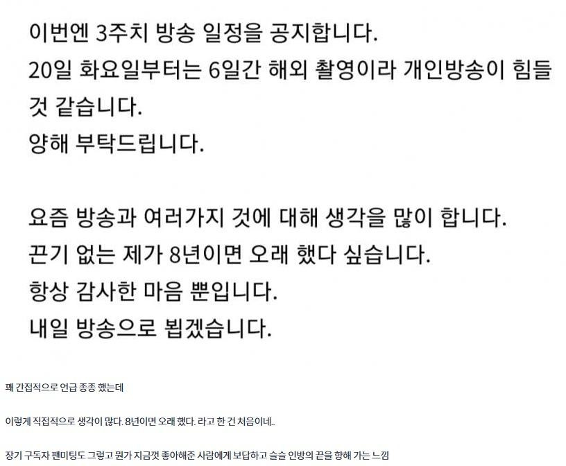침착맨 최근자 공지에서 은퇴 암시 논란