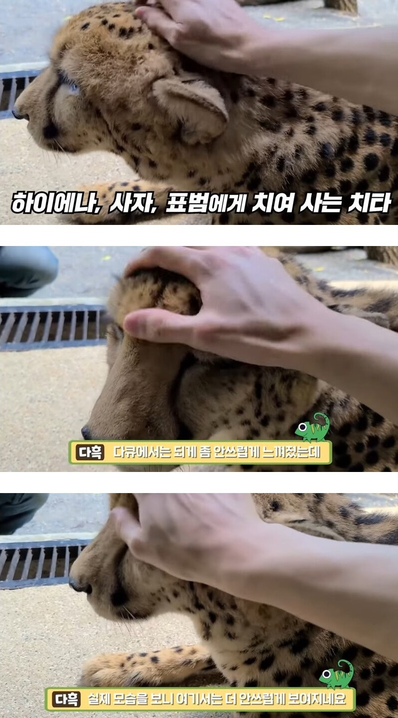 치타 직접 만져본 유튜버 후기