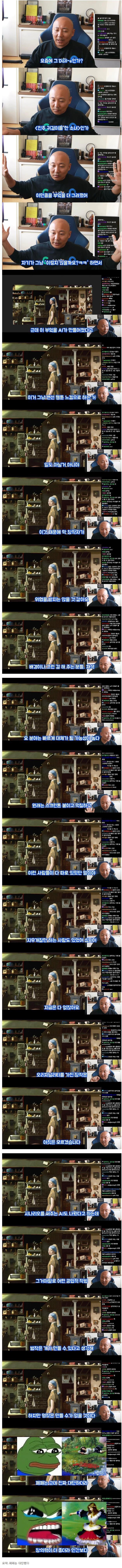 주호민이 생각하는 AI 그림 본문 0 피클인방 목록 EVENT) 지금 로그인 후 광고 제거 혜택을 받으세요! TIP) 초승달 아이콘을 누르고 어두운 화면으로 전환 해보세요 TIP) 본문 하단 무지개 로켓을 누르고 시간 여행을 떠나보세요 TIP) 빈 공간을 두 번 누르면 맨 아래로 바로 갈 수 있어요 TIP) 편지 아이콘이 무지개 빛으로 빛난다면 쪽지가 온거에요 TIP) 본문 하단 댓글 온/오프 버튼으로 숨기거나 펼칠 수 있습니다 스케일링은 치위생사가 하는 이유 23.08.27 404804 지기TV 복귀에 또 피해 받는 채널.. 23.08.26 38356 악플러 선처 해줬더니 생긴 일 23.08.26 418703 10년 차 아이폰 유저로서 불편한 점 23.08.26 314817 170kg 뚱보남 렌탈하기 23.08.26 311905 음악 유튜브 뜻밖의 썸네일 어그로 23.08.26 329290 예산 맥주 축제 미리가본 유튜버 리뷰 23.08.25 20089 침착맨 옥냥이 술 먹방 전 후 비교 23.08.25 310428 열린1페이지 2페이지 3페이지 4페이지 5페이지 6페이지 7페이지 8페이지 다음 맨끝 게시물 검색 검색대상 제목 내용 제목+내용 댓글작성자 검색어 필수 삭제요청