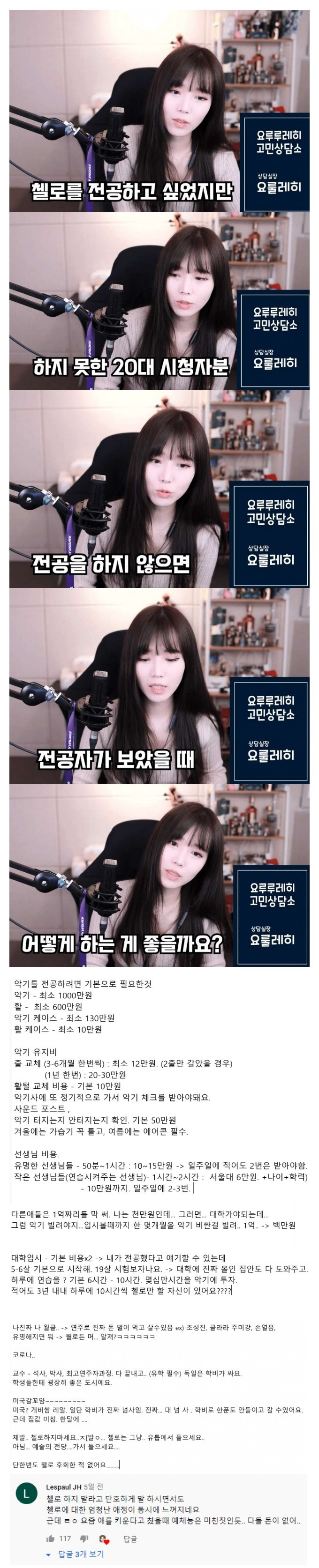 첼로 전공자가 본 첼리스트 본문 0 피클인방 목록 EVENT) 지금 로그인 후 광고 제거 혜택을 받으세요! TIP) 초승달 아이콘을 누르고 어두운 화면으로 전환 해보세요 TIP) 본문 하단 무지개 로켓을 누르고 시간 여행을 떠나보세요 TIP) 빈 공간을 두 번 누르면 맨 아래로 바로 갈 수 있어요 TIP) 편지 아이콘이 무지개 빛으로 빛난다면 쪽지가 온거에요 TIP) 본문 하단 댓글 온/오프 버튼으로 숨기거나 펼칠 수 있습니다 스케일링은 치위생사가 하는 이유 23.08.27 404813 지기TV 복귀에 또 피해 받는 채널.. 23.08.26 38366 악플러 선처 해줬더니 생긴 일 23.08.26 418705 10년 차 아이폰 유저로서 불편한 점 23.08.26 314830 170kg 뚱보남 렌탈하기 23.08.26 311914 음악 유튜브 뜻밖의 썸네일 어그로 23.08.26 329303 예산 맥주 축제 미리가본 유튜버 리뷰 23.08.25 20094 침착맨 옥냥이 술 먹방 전 후 비교 23.08.25 310436 열린1페이지 2페이지 3페이지 4페이지 5페이지 6페이지 7페이지 8페이지 다음 맨끝 게시물 검색 검색대상 제목 내용 제목+내용 댓글작성자 검색어 필수 삭제요청
