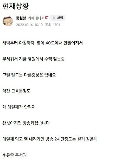 코로나 걸렸다는 풍월량 근황