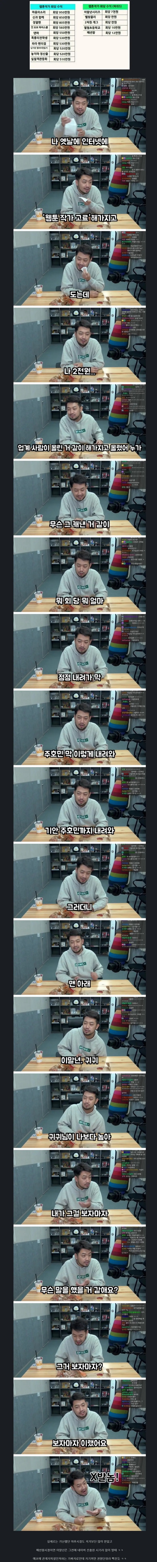 주작 자료에 빡쳤던 침착맨 본문 0 피클인방 목록 EVENT) 지금 로그인 후 광고 제거 혜택을 받으세요! TIP) 초승달 아이콘을 누르고 어두운 화면으로 전환 해보세요 TIP) 본문 하단 무지개 로켓을 누르고 시간 여행을 떠나보세요 TIP) 빈 공간을 두 번 누르면 맨 아래로 바로 갈 수 있어요 TIP) 편지 아이콘이 무지개 빛으로 빛난다면 쪽지가 온거에요 TIP) 본문 하단 댓글 온/오프 버튼으로 숨기거나 펼칠 수 있습니다 스케일링은 치위생사가 하는 이유 23.08.27 404804 지기TV 복귀에 또 피해 받는 채널.. 23.08.26 38356 악플러 선처 해줬더니 생긴 일 23.08.26 418704 10년 차 아이폰 유저로서 불편한 점 23.08.26 314817 170kg 뚱보남 렌탈하기 23.08.26 311905 음악 유튜브 뜻밖의 썸네일 어그로 23.08.26 329290 예산 맥주 축제 미리가본 유튜버 리뷰 23.08.25 20089 침착맨 옥냥이 술 먹방 전 후 비교 23.08.25 310428 열린1페이지 2페이지 3페이지 4페이지 5페이지 6페이지 7페이지 8페이지 다음 맨끝 게시물 검색 검색대상 제목 내용 제목+내용 댓글작성자 검색어 필수 삭제요청