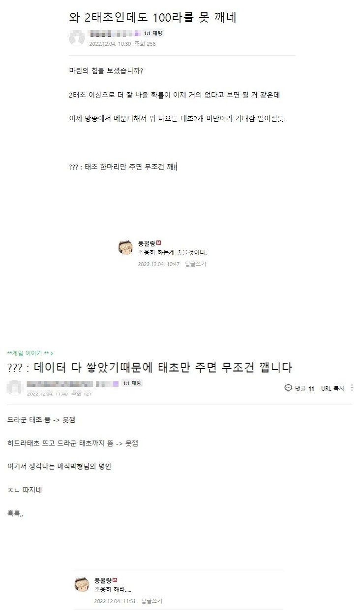 팬카페에서 돌림 당하는 풍월량 근황 본문 0 피클인방 목록 EVENT) 지금 로그인 후 광고 제거 혜택을 받으세요! TIP) 초승달 아이콘을 누르고 어두운 화면으로 전환 해보세요 TIP) 본문 하단 무지개 로켓을 누르고 시간 여행을 떠나보세요 TIP) 빈 공간을 두 번 누르면 맨 아래로 바로 갈 수 있어요 TIP) 편지 아이콘이 무지개 빛으로 빛난다면 쪽지가 온거에요 TIP) 본문 하단 댓글 온/오프 버튼으로 숨기거나 펼칠 수 있습니다 스케일링은 치위생사가 하는 이유 23.08.27 404804 지기TV 복귀에 또 피해 받는 채널.. 23.08.26 38356 악플러 선처 해줬더니 생긴 일 23.08.26 418703 10년 차 아이폰 유저로서 불편한 점 23.08.26 314817 170kg 뚱보남 렌탈하기 23.08.26 311905 음악 유튜브 뜻밖의 썸네일 어그로 23.08.26 329290 예산 맥주 축제 미리가본 유튜버 리뷰 23.08.25 20089 침착맨 옥냥이 술 먹방 전 후 비교 23.08.25 310428 열린1페이지 2페이지 3페이지 4페이지 5페이지 6페이지 7페이지 8페이지 다음 맨끝 게시물 검색 검색대상 제목 내용 제목+내용 댓글작성자 검색어 필수 삭제요청
