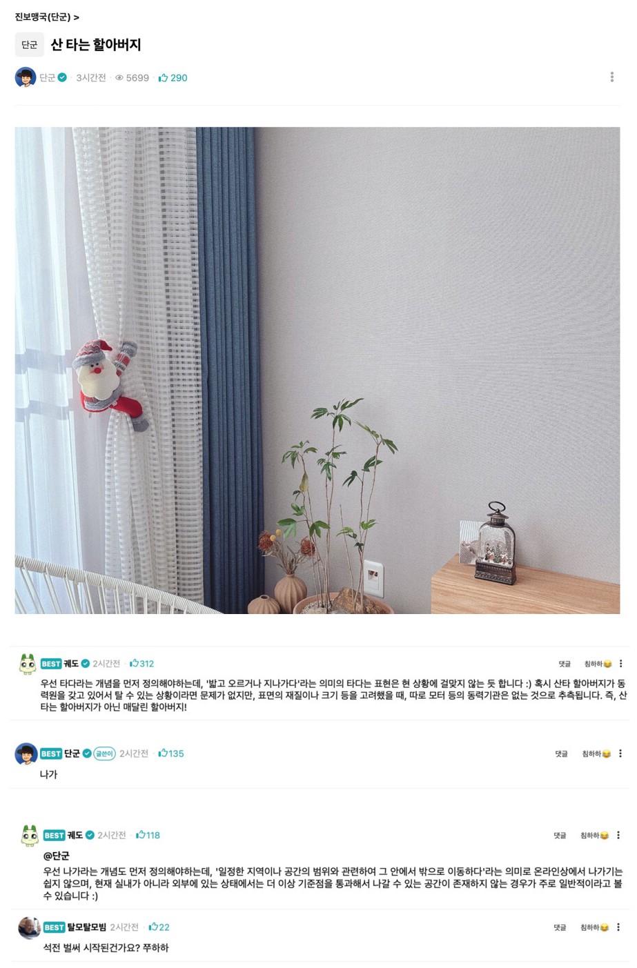 단군 게시판에 침범한 궤도 근황 본문 0 피클인방 목록 EVENT) 지금 로그인 후 광고 제거 혜택을 받으세요! TIP) 초승달 아이콘을 누르고 어두운 화면으로 전환 해보세요 TIP) 본문 하단 무지개 로켓을 누르고 시간 여행을 떠나보세요 TIP) 빈 공간을 두 번 누르면 맨 아래로 바로 갈 수 있어요 TIP) 편지 아이콘이 무지개 빛으로 빛난다면 쪽지가 온거에요 TIP) 본문 하단 댓글 온/오프 버튼으로 숨기거나 펼칠 수 있습니다 스케일링은 치위생사가 하는 이유 23.08.27 404813 지기TV 복귀에 또 피해 받는 채널.. 23.08.26 38366 악플러 선처 해줬더니 생긴 일 23.08.26 418705 10년 차 아이폰 유저로서 불편한 점 23.08.26 314823 170kg 뚱보남 렌탈하기 23.08.26 311912 음악 유튜브 뜻밖의 썸네일 어그로 23.08.26 329295 예산 맥주 축제 미리가본 유튜버 리뷰 23.08.25 20094 침착맨 옥냥이 술 먹방 전 후 비교 23.08.25 310436 열린1페이지 2페이지 3페이지 4페이지 5페이지 6페이지 7페이지 8페이지 다음 맨끝 게시물 검색 검색대상 제목 내용 제목+내용 댓글작성자 검색어 필수 삭제요청