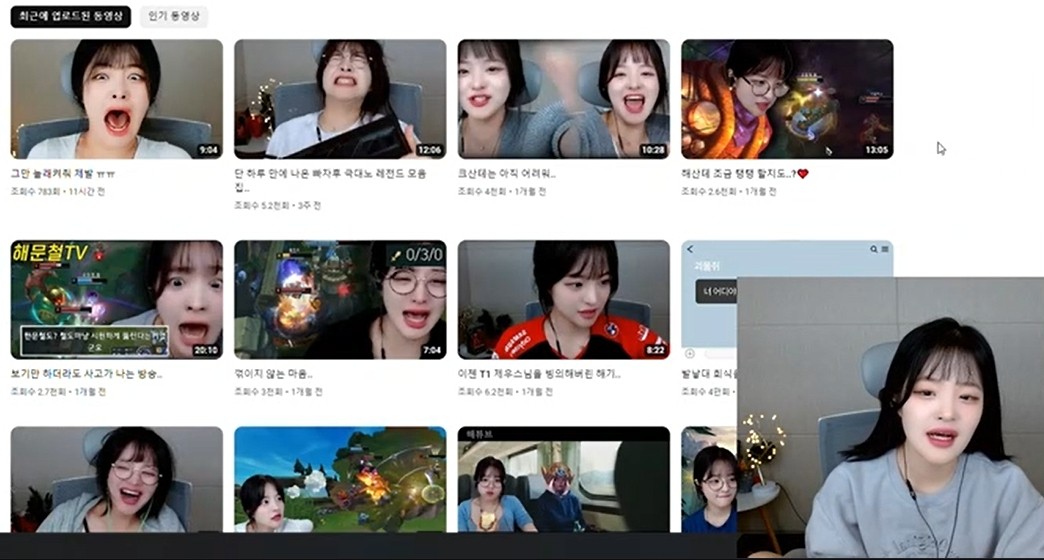 본인 유튜브 썸네일을 보는 롤 스트리머